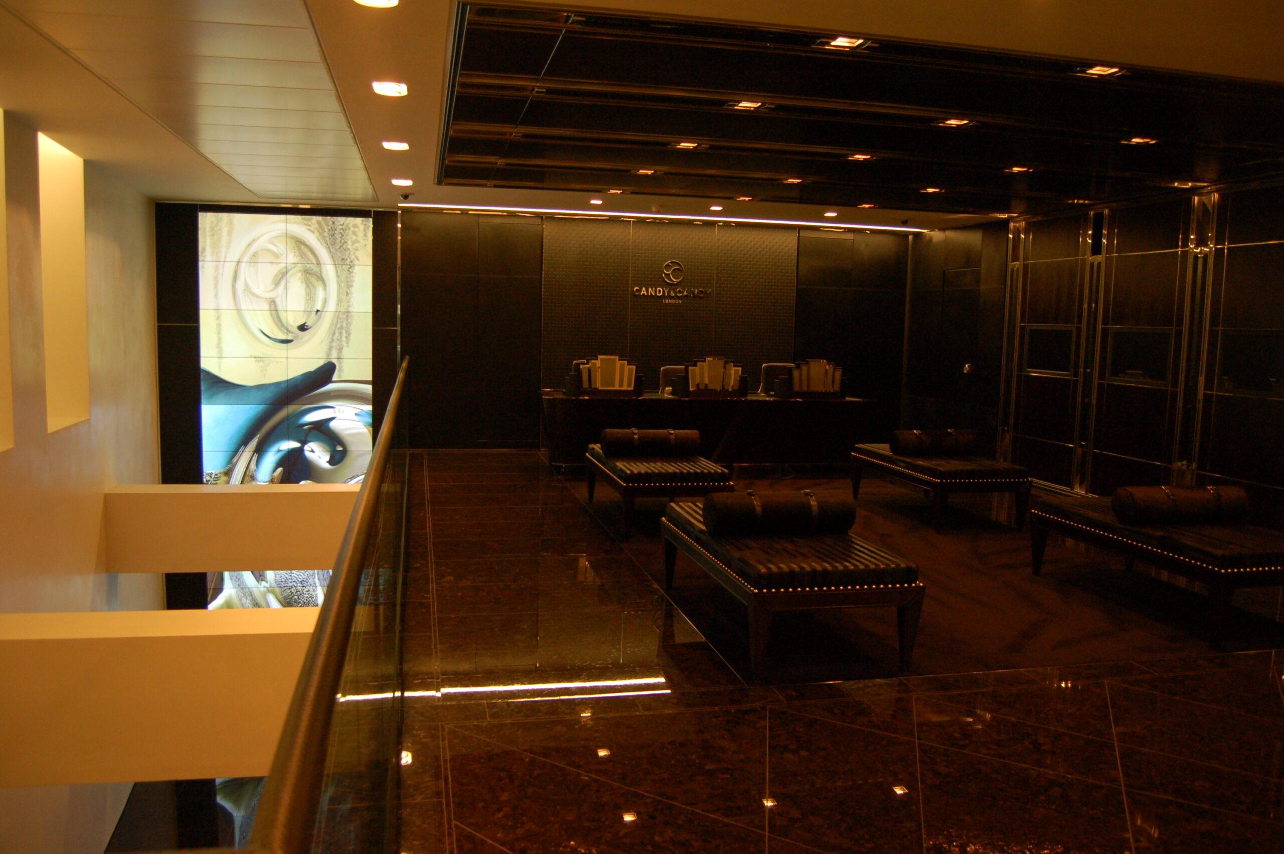 LCI was commissioned by Candy & Candy to design and install a bespoke plasma display wall at their Millbank offices in London. The installation was intended to create a striking visual centrepiece within the corporate environment, reflecting the brand’s premium positioning