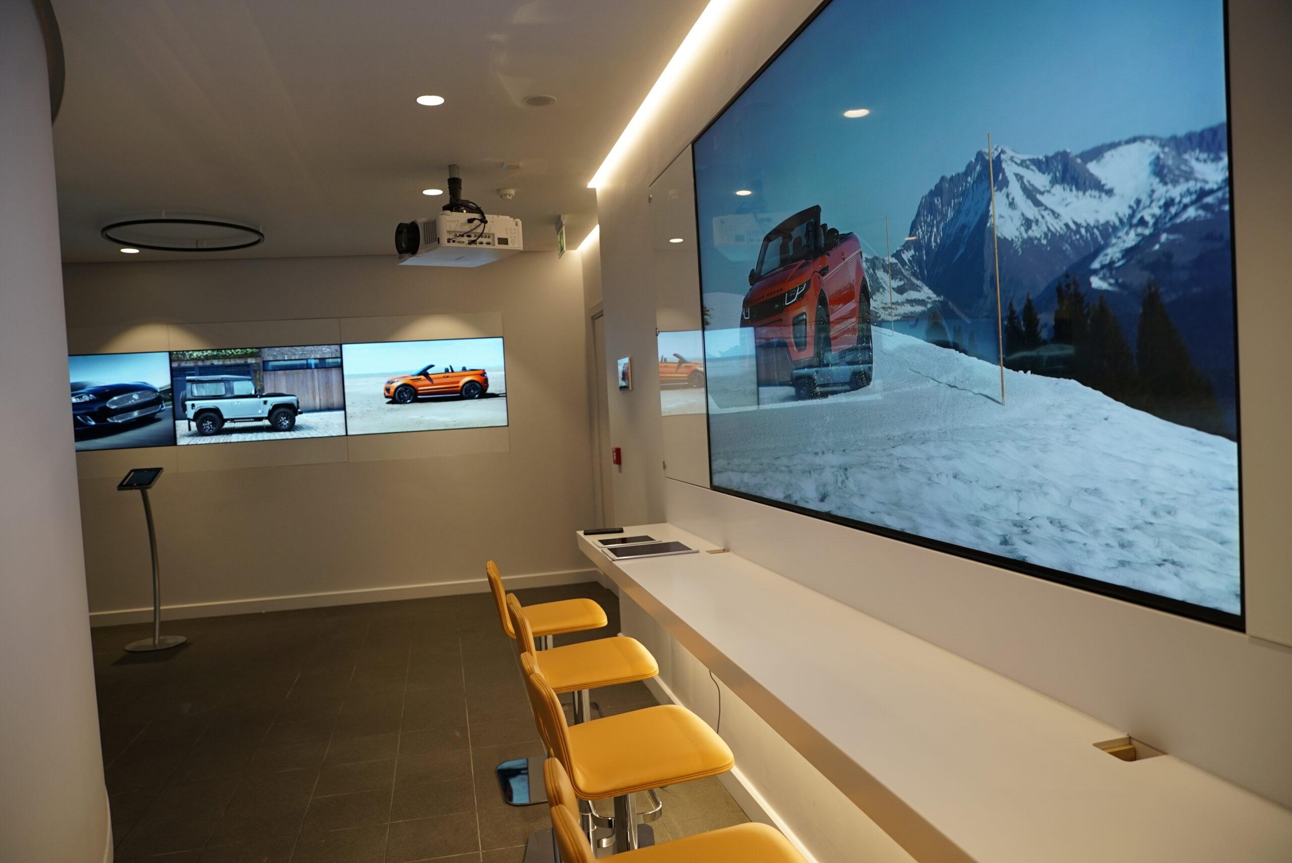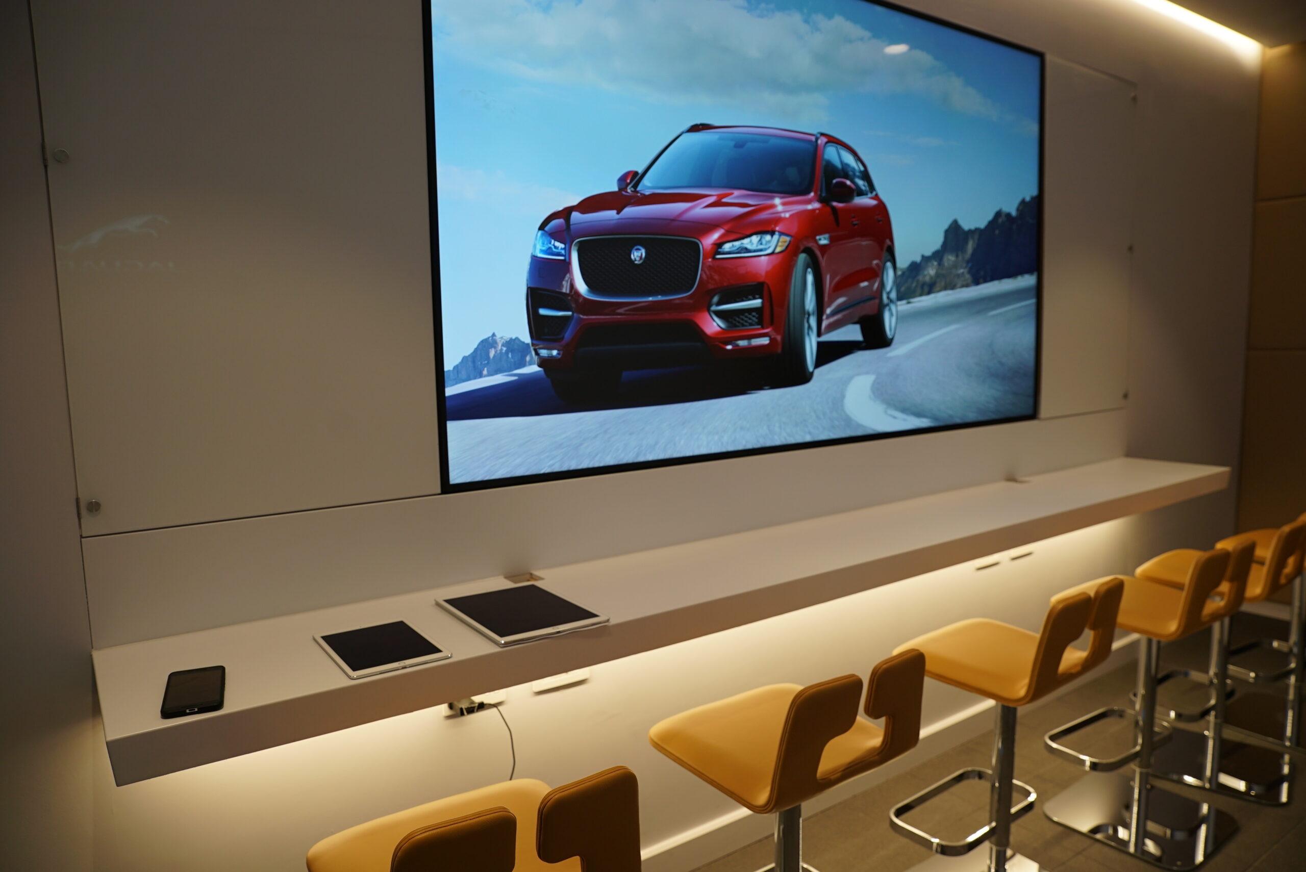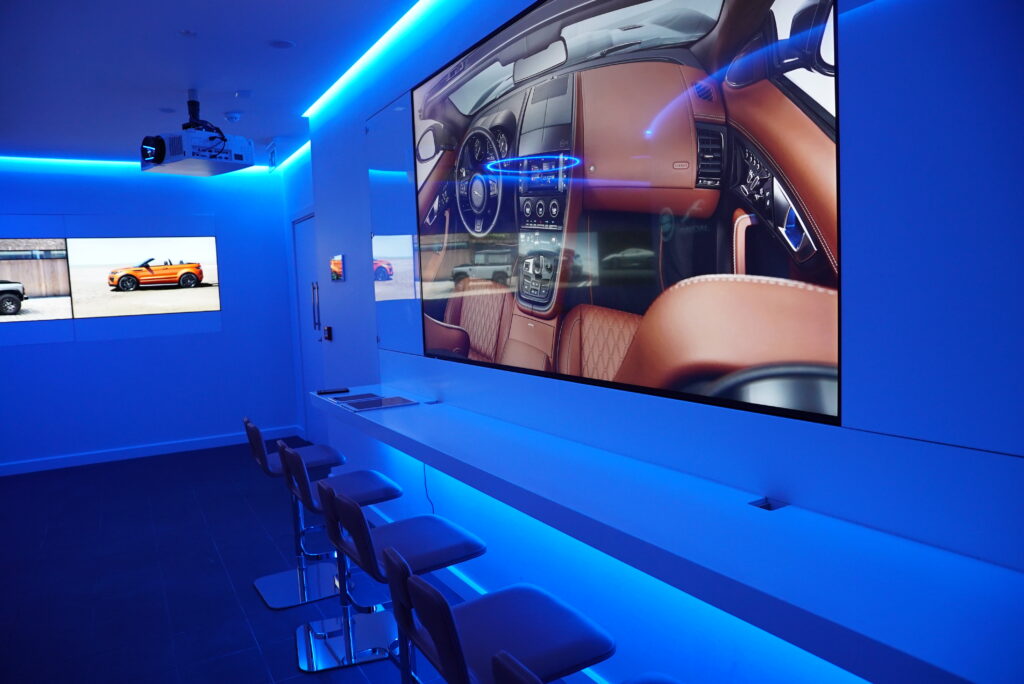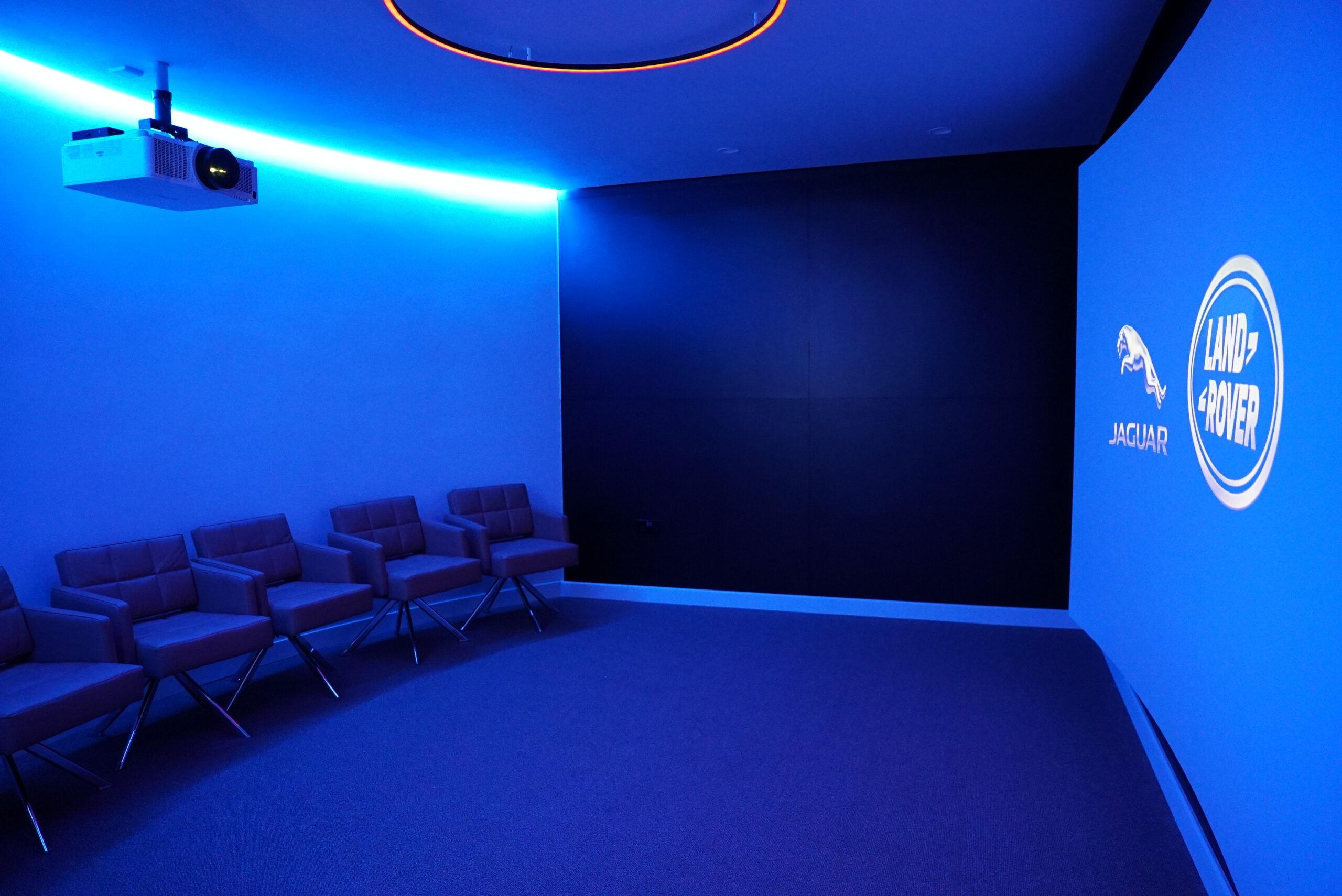 The finished Experience Centre is a sleek, multifunctional space where Jaguar Land Rover can showcase their vision, collaborate with teams, and engage visitors with cutting-edge AV experiences – all delivered with precision and polish by the LCI team.