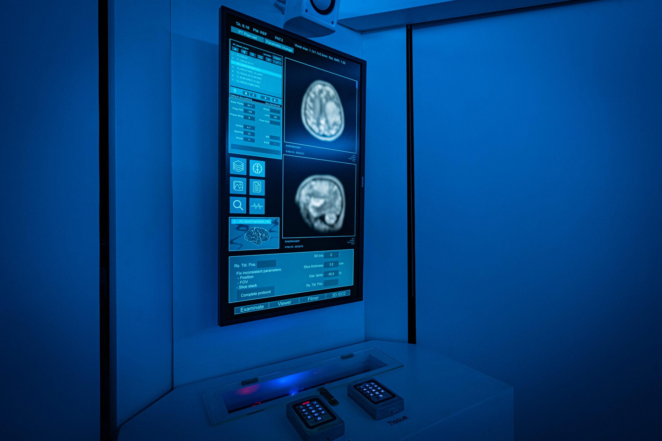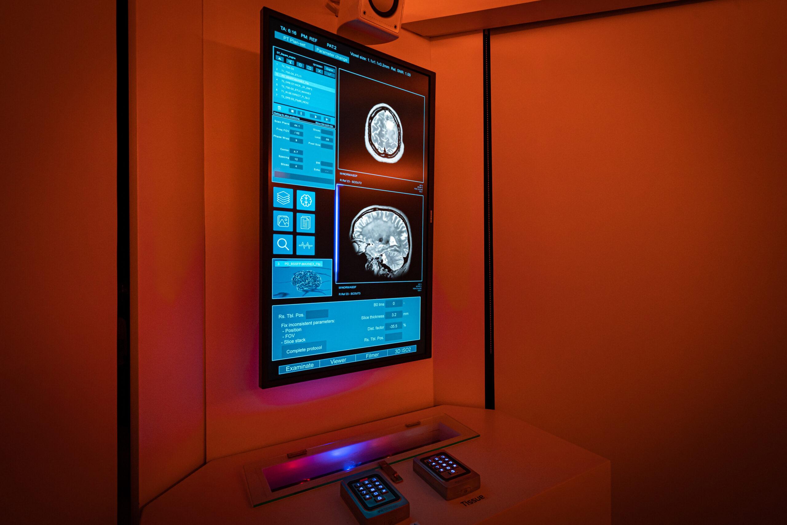 - UHD 32” & HD 24” Samsung panels displayed dynamic MRI scans and brain images.