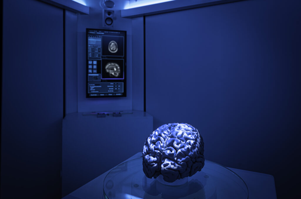 The University needed to translate complex neurological concepts into an engaging, tactile experience that would appeal to everyone from school groups to science fair visitors. The goal: blend education with escapism. We had to create a responsive, sensory-rich environment that brought MRI technology, real-life brain scans, and AI mischief to life – while ensuring it could be packed up and taken on tour.