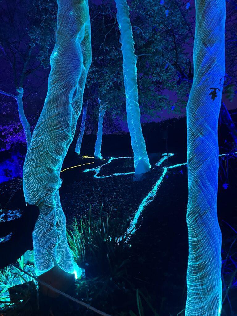 An interconnected living installation powered by light engines and fibre-optics wraps around the trees. These growing “root systems’ create an other-wordly- like ecosystem that responds visually as guests move through the space.