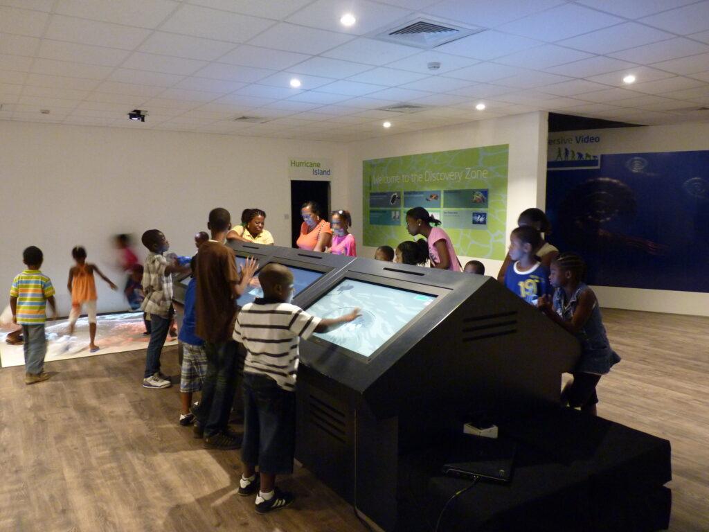 Provide touch-sensitive tables that allow users to explore content or play games collaboratively.
